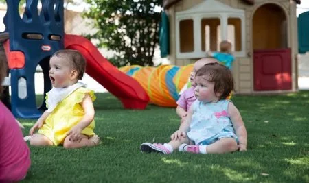 Added emphasis on art projects, creativity, and social interaction to help prepare children for preschool. Introduction to Spanish lessons and parts of the body. As in the young 2’s classroom, these children nap on mats and visit the smaller playground.